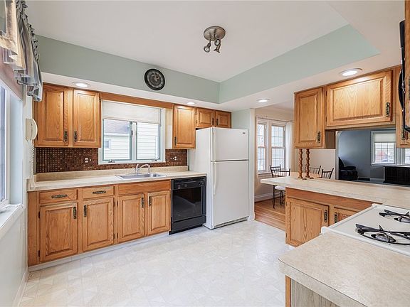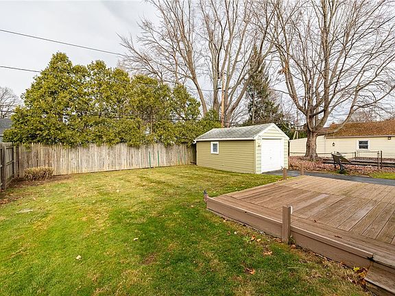 Move in ready 3 bedroom 1.5 bath Cape, centrally located in Greece School district! Right around the corner from Wegmans, Triano's Meat Market and Carbones Pizza, this classic cape features a one-car garage with garage-door opener, driveway turnaround and back deck overlooking the nicely kept backyard. Mechanical features include: vinyl replacement windows, architectural roof, forced air furnace & air conditioning (2009). Interior features include: Modern/updated kitchen with an abundance of storage & built in dishwasher, dining room adjacent to the pass through cabinets in the kitchen featuring beautiful hardwood floors, a family room with a gas fireplace, and an enclosed sun room on the front of the home. Updated bathroom, 2 first floor bedrooms and one large upstairs bedroom with walk in closet and built in storage. The full basement provides more storage, a workshop area, and a half bath! Don't miss out. No delayed negotiations!