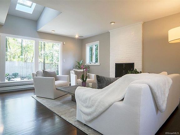 You will love- this easy breezy lifestyle home in a great cul -de- sac neighborhood a quick stroll to the waterfront at Compo Beach. Situated on a lovely private lot this pristine home offers desirable one floor living with the added bonus of a large bonus room, laundry, full bath and access to the garage on the lower level. On entering the front door one feels the lovely ambiance that results from gleaming hardwood floors, over- sized windows and the pleasing palette of the recently painted walls. The sun drenched living room has a wall of glass windows, vaulted ceilings and a stylish gas fire place. Light floods the dining room through the sky lights and large slider that opens to the beautiful patio and gardens in the back. The dining room opens to the updated kitchen with dine-in counter. A Master BR with glass doors to a private deck & walk-in closet, carrara marble bathroom and two more bedrooms with double closets complete the main floor. The lower level features a large carpeted bonus room with garage access, mudroom area, full bath laundry and walk-in storage closet. 2019 IMPROVEMENTS include: New roof, new gutters, new sewer installation, new oil tank, renovated lower level, new interior paint, Nest Thermostats, renovated main floor bath, renovated Master Bedroom, reworked gardens, blue stone patio & newly planted lawn and whole house ADT security system with cameras and RING doorbell. New LG washer & dryer. Lower level not incl in SF. Just move in and enjoy! There is 688 SF additional living space in the lower level. SEE FEMA REPORT IN DOCUMENTS ATTACHED TOTHE LISTING