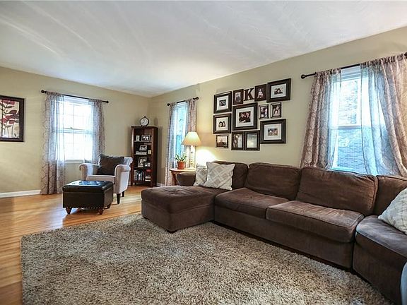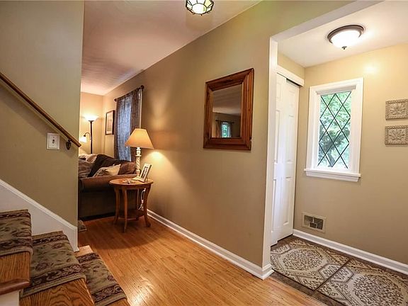 Outstanding move-in ready Colonial nestled in a beautiful park-like yard! Over 60K in upgrades/remodeled for more open concept! Completely renovated spacious kitchen with gorgeous maple cabinets, Corian counters, matching stainless Kenmore appliances, newer hardwoods, and great island! Tons of storage! Open to cozy family room, with cathedral ceiling, beautiful rustic beams, new carpet and Vermont Casting wood stove! Huge master with walk in closet! Recreation room freshly painted with new carpet and glass block window! Additional upgrades: main bath, powder room, gutters, new windows/most rooms, tear off roof 2009, furnace around 2013, new garage door opener with key pad. Near Wegmans, East View Mall, 490, Thruway, Don't miss this one!!!