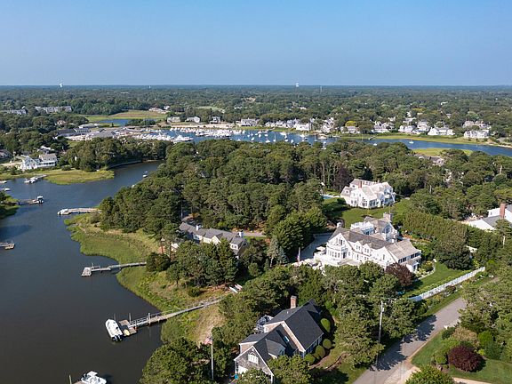 Palatial yet eminently comfortable and move-in ready, no detail has been overlooked in this magnificent 14 room estate home poised majestically on a .88 waterfront site with access to a beautiful private association beach on Nantucket Sound. You will find a desirable deep water dock, saltwater pool with spa, outdoor kitchen, beautiful flower gardens, emerald green lawn for summer games, and a gazebo for relaxing poolside. The interior is breathtaking with gorgeous finishings, intricate ceilings, multiple patios, decks, and balconies. The first-floor primary suite boasts a sitting area with a fireplace, two walk-in closets & private baths and french doors to the patio. The kitchen has a breakfast nook and access to the outdoor kitchen for dining under the wisteria arbor. Enjoy entertaining in the great room with access to the water view patio and pool, watch a movie in the walk-out family room or start the day in the fitness room. There is something for everyone to enjoy. Other amenities include an outdoor shower, alarm system, irrigation, seven-bedroom septic system, widows walk, and laundry rooms on every floor. Truly a spectacular property to enjoy the beauty of Cape Cod.