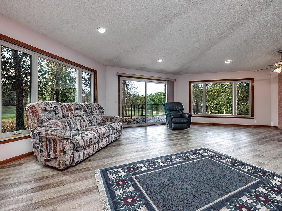 Great DeSoto Golf Course home with one of the best views on the course and golf front lot next door conveys with sale. Flat driveway and double garage. All brick home and composite deck. Roof is 4 years old, water heater replaced in 2022. Kitchen and garage refrigerators stay. Washer and dryer stay. Walk in showers in both baths. Double closets in master bedroom. Unique living room design with a wall of windows to enjoy the view. Wood burning fireplace. Pull out pantry in kitchen for large amount of storage space.