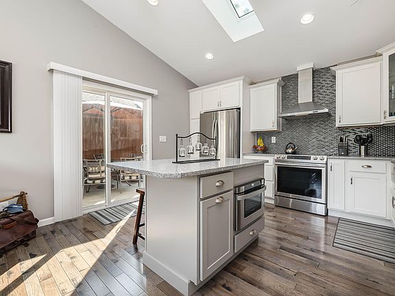- Features: Walk-Out Access, Laminate Flooring, Skylight(s), Breakfast Bar, Kitchen Island, Eat-in Kitchen, Wood Cabinets