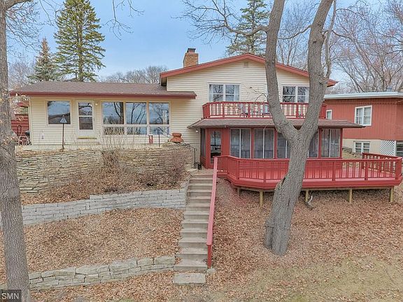 Enjoy Lake living just minutes from the cities in this quant, charming neighborhood. Kitchen has cambria countertops and stainless appliances, oak floors throughout the main level and upper level, 2 fireplaces, and new carpet in lower level. Large screened in porch with stunning panoramic south westerly views and 135 ft of frontage on Golden lake. Sit out on one of two decks or the concrete patio while enjoying the gorgeous, peaceful view.