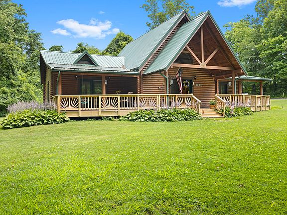 Country living at it's finest! Nestled on a spacious lot, this beautiful log home has so much to offer with 3 bedrooms & 2 full baths. You'll find yourself in a warm and welcoming living room, with vaulted ceilings, laminate flooring, and open living spaces! The kitchen offers a breakfast bar, an abundance of cabinetry for storage, & all kitchen appliances stay! Primary bedroom is a serene retreat with a private bath with an updated shower stall and double sinks! The two additional bedrooms are well-proportioned and offer comfortable living spaces for family members or guests. Loft could be used for additional living space or office! Enjoy all that Mother Nature has to offer on your back deck! 2 car attached garage & shed for extra storage.