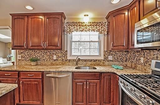 This meticulous Raised Ranch offers all the amenities of modern living inside and out. (The property is the ideal location for community living and privacy.) The home is set on a Cul de sac surrounded by protected conservation land . The view is spectacular from a gorgeous 4 season room attached to an updated kitchen which features, granite countertops, a multi-functional central island ,stainless steel appliances, gas range, and a spacious dining area. All 3 bedrooms as well as the living room (and hallways) have hardwood flooring. The master bedroom is enhanced by a breezeway that connects to an outside deck. The bathroom has updated granite counter tops and tile flooring. The lower level offers a family room, gas fireplace, and (convenient) laundry / utility area. Additional updates include the roof, windows and brand new septic system. Don't miss out on the fantastic opportunity!
