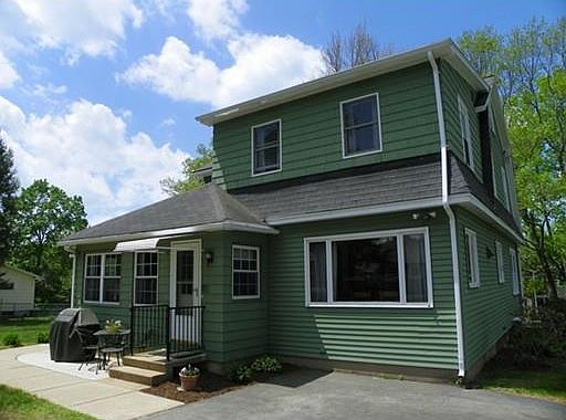 Stately, gracious, beautiful home! Classic Colonial with relaxing front porch - a charmer from top to bottom!Large spacious rooms include a lovely Living Room with handsome gas fireplace and hardwood flooring.Harwood continues through the welcoming center Foyer, into the Formal Dining Room and wonderful Sunroom/Office - and into the large sun-filled Family Room.Gorgeous natural woodwork!Tile flooring in the HUGE eat-in Kitchen with TONS of cabinets and a pleasant eating area overlooking the backyard.Four spacious Bedrms on the second flr all w/ wood flooring & great closet space.Great storage in walk-up attic.Replacement windows, gas heat, brand new high efficiency boiler.Lovely decor throughout this awesome home.Pretty setting set up from street; terrific yard with plenty of garden & play space. THREE CAR GARAGE & Workshop for the car enthusiast or hobbyist! An outstanding home...well kept, updated and neat as a pin. There is so much more for the lucky buyer of this fantastic home!!!