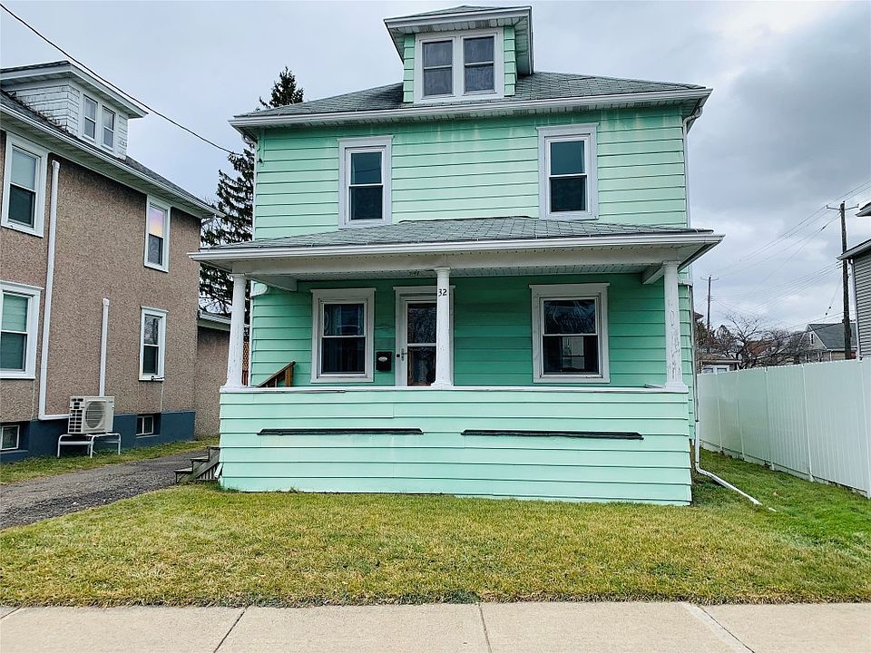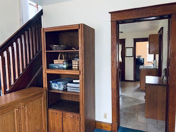 Tidy two story home with GOOD BONES. Beautiful woodwork. Nice open entry foyer. Hardwood floors underneath carpeting. Custom cabinetry in the kitchen pantry with pull out drawers and spice racks. Pantry space can easily be converted into a convenient first floor half bathroom. Stainless steel gas range. Vinyl replacement windows. Newer Dunkirk boiler. Covered front porch and enclosed back porch/mudroom. Detached oversized one car garage. Chain link fencing in backyard. Well maintained home.