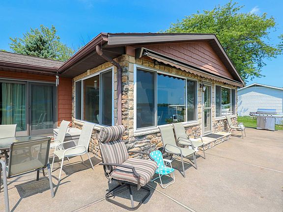 If a beautiful year-around home on the lake is what you have been looking for - then you have found it! Open concept sprawling ranch with 3 bedrooms, 3 baths and a 3-car attached garage. Gorgeous views with over 100 linear feet of lake/channel frontage. This home offers 2 master suites! The grand master suite has an extra large bathroom and walk in closet. All appliances included in this newly updated kitchen (2016). Sure to please any chef! Gorgeous hardwood flooring, new siding and stonework on exterior of home. An automatic awning on lakeside. Piers included. Lots of space in the garage for your toys.