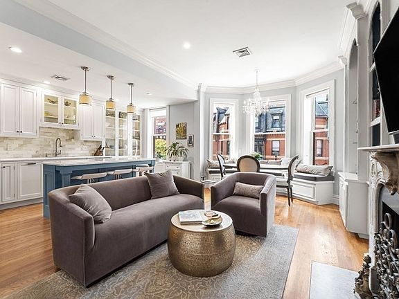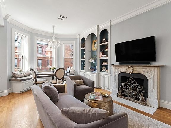 Experience the allure of Back Bay living in this exquisitely renovated sunlit home w/ iconic Back Bay views. This remarkable residence seamlessly blends elegance w/ classic Back Bay architectural details. The spacious open floor plan includes a well designed kitchen featuring marble countertops, a center island, a Thermador 5-burner gas stove, a Sub-Zero refrigerator & an adjoining dining/living area. The interior features hardwood floors, crown molding, custom built-ins, bay windows w/ custom window seat and storage, high ceilings, recessed lighting & a marble gas fireplace. Modern conveniences: AC & an in-unit full-size W/D to enhance your comfort. There is a primary bedroom ensuite marble bath, heated marble tile floor & a deep tub. An additional guest room and a full bath. Enjoy your own urban oasis w/ a private terrace perfect for outdoor entertaining. Close to world-class shopping & restaurants, picturesque Comm Ave Mall & the Charles River Esplanade.