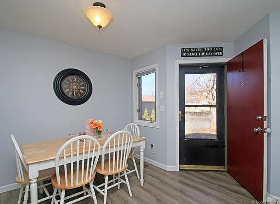 Partially renovated 2 bedroom,1.5 bath townhouse. Enjoy the beautiful views of the bridle trail from the back deck. New floors on main level and updated kitchen with granite countertops. LARGE master bedroom with cathedral ceiling and skylight that offer plenty of natural light. Newer roof. Basement offers an extra 577 sq. ft. Finished entertainment area in basement with built-in T.V. that will stay. Laundry room and extra storage spacelocated in the basement as well. Owner will give credit for new carpeting on second floor.