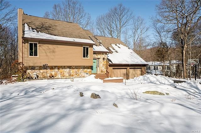 Scenic Splendor surrounds this unique private Contemporary on 2.9 acres. This home offering 4 bedrooms & 3 full baths is just minutes to Taconic State Parkway making commuting convenient. A large deck which extends the full length of the house overlooks two small ponds w/waterfalls. Large light and bright kitchen with center island. The living room and dining room with vaulted ceilings and fireplace is great for entertaining. Master BR has private bath and WIC. Perfect Mother-Daughter potential.