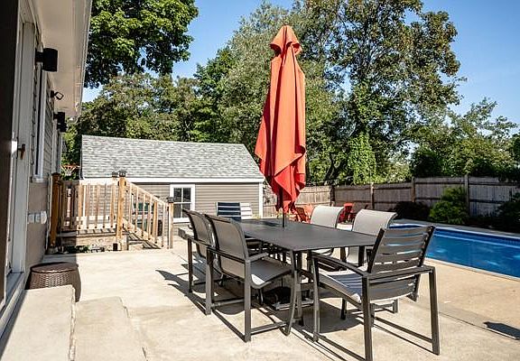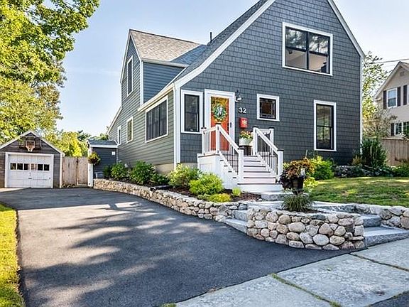This "SIDEWAYS SALTBOX COLONIAL" HAS IT ALL!! High Ceilings, BRAND NEW WHITE KITCHEN W/STAINLESS, Large GAS STOVE, QUARTZ COUNTERS, AN ISLAND To sit & entertain! EVERY room IS FRESHLY PAINTED & Charming! Upon entering you will find a GIANT MUDROOM flanked w/ beautiful Shiplap offering a great area to store your coats/boots etc. The first floor has two separate living areas, the first, a comfortable living room, large enough to fit a generous size sectional! It opens to a beautiful formal dining room w/stunning wainscoting and builtins. Steps towards the back of the home is an additional family room to relax & overlooks your entertainers fenced in yard & inground pool. Upstairs are 3 bedrooms. The MB features HUGE windows that let the sun pour right in! This home boasts NEWER ROOF, WINDOWS, SIDING, AND SYSTEMS, CENTRAL A/C AND HEATING! The home is complete w/ updated laundry & new tiled bath. WALK TO COMMUTER RAIL, and only 12 ml to BOSTON!