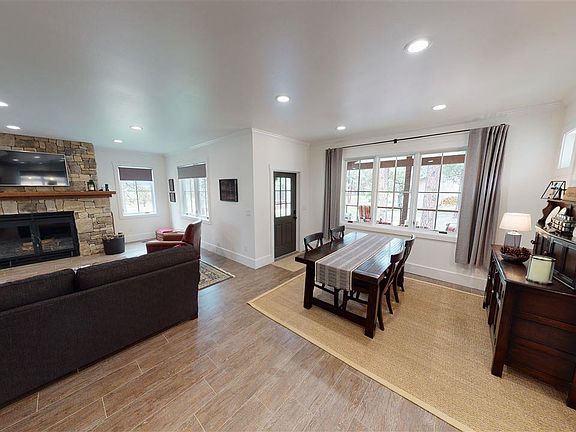 Stunning mountain home off the 7th fairway. Built in 2016, this home offers modern amenities against a beautiful backdrop. Large open floor plan opens onto a relaxing covered deck overlooking the #7 tee box & fairway. Contemporary kitchen with gas stove and convection oven, quartz counters, glass tile, and stainless-steel appliances. Entry storage lockers with bench. Spacious master bedroom has breathtaking views, a walk-in closet, storage system and barn doors. Beautiful wood cathedral ceiling. Master bath with double sinks, walk-in shower and tub. Front load washer/dryer in laundry room. Two upstairs bedrooms with cathedral ceilings, bathroom and additional living area. Built using high quality materials. 676 sq foot 2 car detached garage. Sold furnished with some exceptions. Golf carts and Skag mower are negotiable. Conveniently located with easy access to golf course, pro-shop, restaurant, and bar. Truly comfortable and inviting home for full-time or seasonal living!