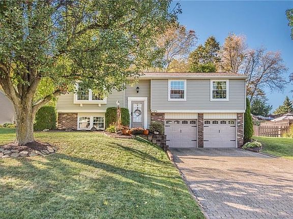 Fall in love with this stylish split level located just minutes from all the shopping & dining Robinson has to offer! A brick driveway & manicured yard greet your guests. Inside, a cozy living room opens to the perfect dining room for hosting intimate family affairs and grand holiday meals. Entertaining is a breeze in the updated kitchen with SS appliances, dark cabinets, & a breakfast nook. Unwind in the owner's suite complete w/ plush carpet, an extra-wide closet, and private en-suite bathroom with extra storage! Two more bedrooms make great kids' rooms or guest rooms. A shared bathroom has a lot of counter space and plenty of storage. Downstairs, host family game nights & gatherings w/ friends in your finished basement w/awesome built-in desk space ideal for working from home or home schooling! A convenient half bathroom & laundry room complete the basement. Outside, you'll love the giant covered patio that spills onto a huge, flat back yard for the kids & Fido. New roof & windows!