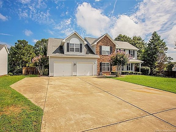 Charming 4 bedroom, 3.5 bath home located in low Harnett county tax area, minutes away from shopping and close to post. Newly painted interior. Living room with a fireplace, formal dining room with trey ceilings. French doors opening into a sun-room looking out to the backyard that has grape vines great for autumn picking. The kitchen has all stainless steel appliances, to include a stainless steel double bowl sink and glass cook top stove. All bedrooms are upstairs, to include the laundry area. Master bedroom with trey ceilings w/ separate shower and tub. Bonus bedroom has a full bathroom and walk in closet, 2 attic walk in storage areas, and another room attached with a set of French doors. New epoxy garage flooring. With this home having 3 walk-in closets total, it has endless amount of storage throughout. There is an above ground pool(As-is), great to cool off in the summer heat and an awesome heated tree house (As-is) hidden in the back tree line of the fully fenced backyard.