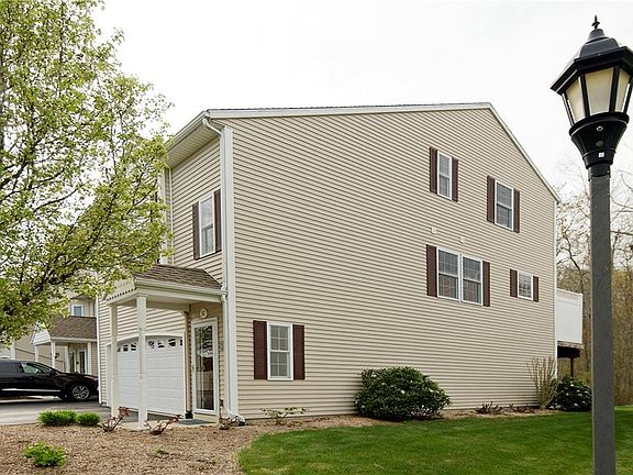 Bright and private END UNIT overlooking Westerly Land Trust. Eat in kitchen AND dining area walks out to the 23 x 8 foot private deck. Lovely living room with cathedral ceiling and gas fireplace. Loft area with washer and dryer hookups, large master suite with bath and walk in closet. 18x17 walkout finished level for family room or exercise room. 2-car garage, central air, gas heat, very short walk to the inground pool. Downtown Westerly and Westerly beaches are minutes away.