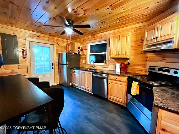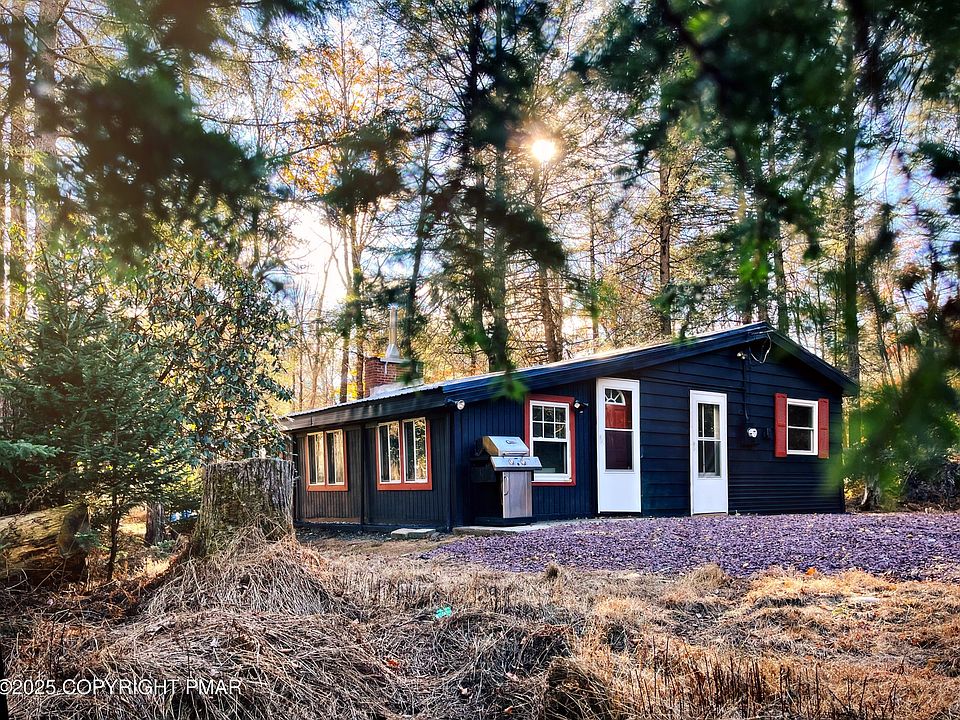 A quiet and cozy getaway awaits you at this charming little cabin amongst the towering pines. Recently upgraded and remodeled with a Pocono Mountain aesthetic in mind. Too many upgrades to list them all; knotty pine walls, hardwood floors, granite countertops, newly installed mini-splits for heating and cooling. Located at the end of a cul-de-sac, neighboring house are few and car traffic is nearly non-existent. Privacy and quiet can be yours all within an amenity filled community! This home is located just 1/4 of a mile from the lake! Short driving distance to ski resorts, Jim Thorpe attractions, and Hickory Run State Park!
