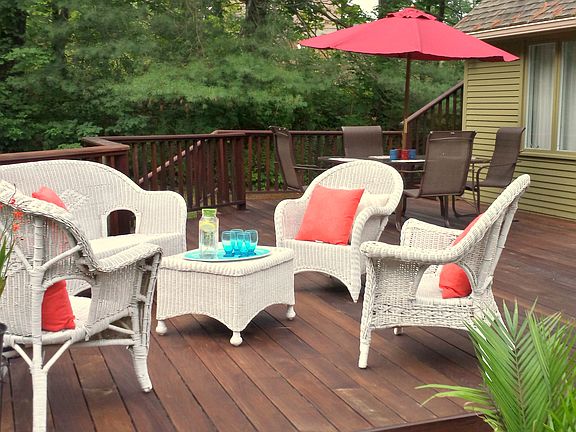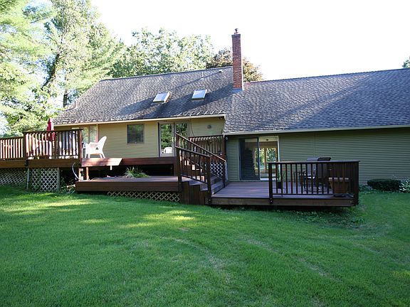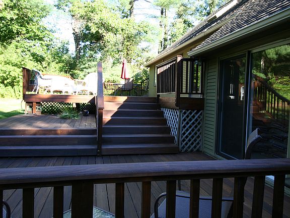 MOTIVATED SELLER. This completely renovated Cape Cod home has an open floor plan and comes with a beautiful kitchen with cherry cabinets, quartz countertops, large pantry, hardwood floors, and a huge island which seats 4, perfect for entertaining. Relax in your large living room with vaulted ceilings, skylights, ceiling fan, and fireplace with pellet stove. Walk through the French doors leading to a massive 3-tiered IPE hardwood deck to enjoy morning coffee in your private and peaceful back yard. Perennial gardens also brighten your view. Sweet dreams await you in your huge master bedroom with vaulted ceilings and large walk-in closet. Master bath offers new tile, large shower, makeup vanity, and soaking tub for perfect relaxation. Plenty of room available with 2 additional spacious bedrooms. Dual-zoned oil heat (forced air) and central cooling provide perfect comfort. Large breezeway offers 3 season usability and dry storage all season. Escape rain/snow with attached 2 car garage.