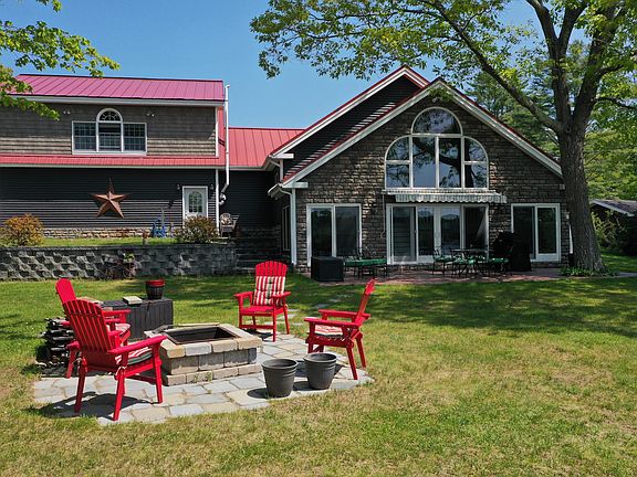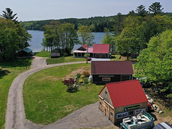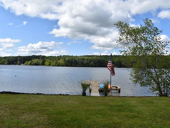 Year round waterfront home offering panoramic views of Bear Pond. Well landscaped, level waterfront 1.29 acre lot perfect for summer lakeside gatherings! This 2005 thoughtfully designed home is quality throughout. Covered porch enters into formal entry. Cherry wood kitchen with granite counters, double wall ovens and stainless appliances has water views and breakfast bar for visiting. Walk-in pantry for the cook in the family. Open living room again with lake views steps down to sunny dining room and family room warmed with Jotul stove for early morning chill. Primary suite on main level features custom walk-in tiled shower. Lower level with 2 guest rooms and full bath. Radiant heat throughout including attached oversized 2 car garage with guest suite and full bath above. Bonus of heated 3 bay garage as well as barn for work shop and toy storage. Heat pumps for warming and cooling. 150' of sandy beach and sunrise and sunset views. Endless amazing qualities and such a special property.