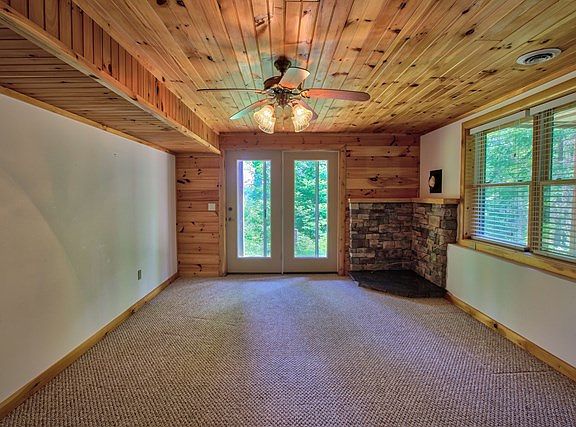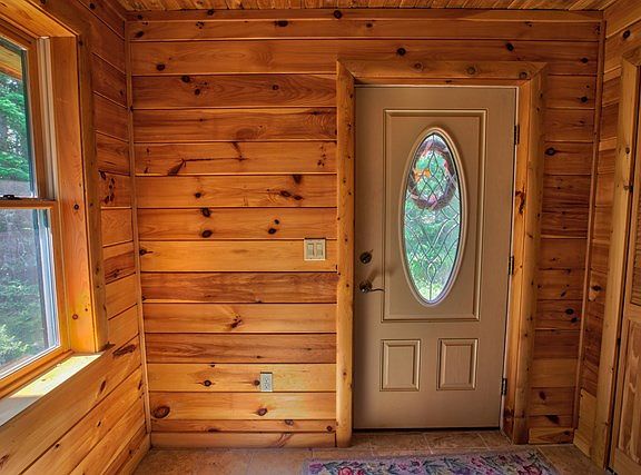 This well laid out Cedar Knoll log home is the epitome of comfortable Adirondack living. Built on the shores of Rainbow Lake in 2005, this 4 bedroom house is snug and modern. The oversized master suite makes up the upper level, featuring a jetted tub, walk in closet, built in gas fireplace and balcony overlooking the lake. The main level has a single bedroom, stylish kitchen, open floor plan, all framed with heavy timbers. Both bedrooms in the basement walk out to a patio on the lakeside. Dense vegetation ensures privacy on this lot. Attached single stall garage adds to the attraction of this property.