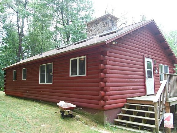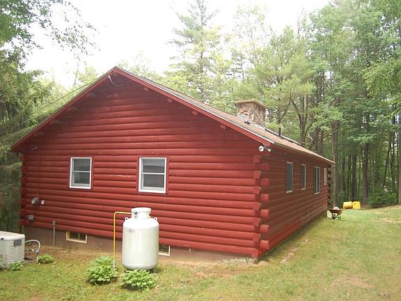 check out this log ranch. In nice condition. cathedral ceiling in livingroom and kitchen. Skylights to bring in natural light to the kitchen. 2 bedrooms with a third room currently use as a den, Large floor to ceiling stone fire place with wood stove insert, 1 acre of land , shed on lot for storage Feel like you're in the country but yet close to Sturbridge and highway access.