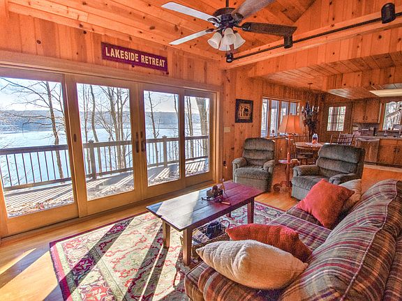 You'll love this Immaculate Lake Wallenpaupack lakefront chalet with spectacular views of the Lake! This 3 bedrooms, 1.5 baths home w/a 2-car detached garage set on 75' of frontage will give you space & privacy without losing that quaint, cozy atmosphere to cuddle up by the fireplace. An open floor plan, granite counters in the kitchen, renovated bathrooms, central AC & a sleeping loft provide just some of the added benefits. This owner updated just about EVERYTHING! Norweco 3-tank septic system, new roof, refinished floors, replaced propane stove HW heater & pressure tank, new sliders, new log exterior & stone work, new electric service (200 amp), new deck, expanded screened in porch & added the 2-car garage. Plenty of parking & short-term rentals permitted.