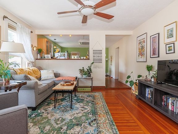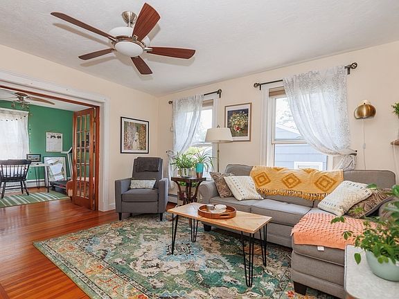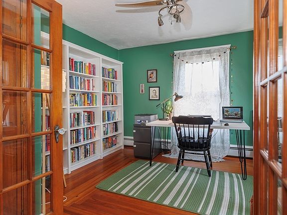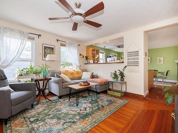 Welcome to this bright sunny home with many hardwood floors, a welcoming open floorplan and convenient, in-unit laundry. Two spacious bedrooms, eat-in kitchen opens to the generous sized living room and an updated full bath. Behind the beautiful french doors you have the option of having a dining room, home office or family room with built in bookshelf. Updated room, furnace and storage space in the basement. Commuting from here is a breeze with RTE 495 less than 1 mile away and access to the commuter line approximately 10 minutes away.