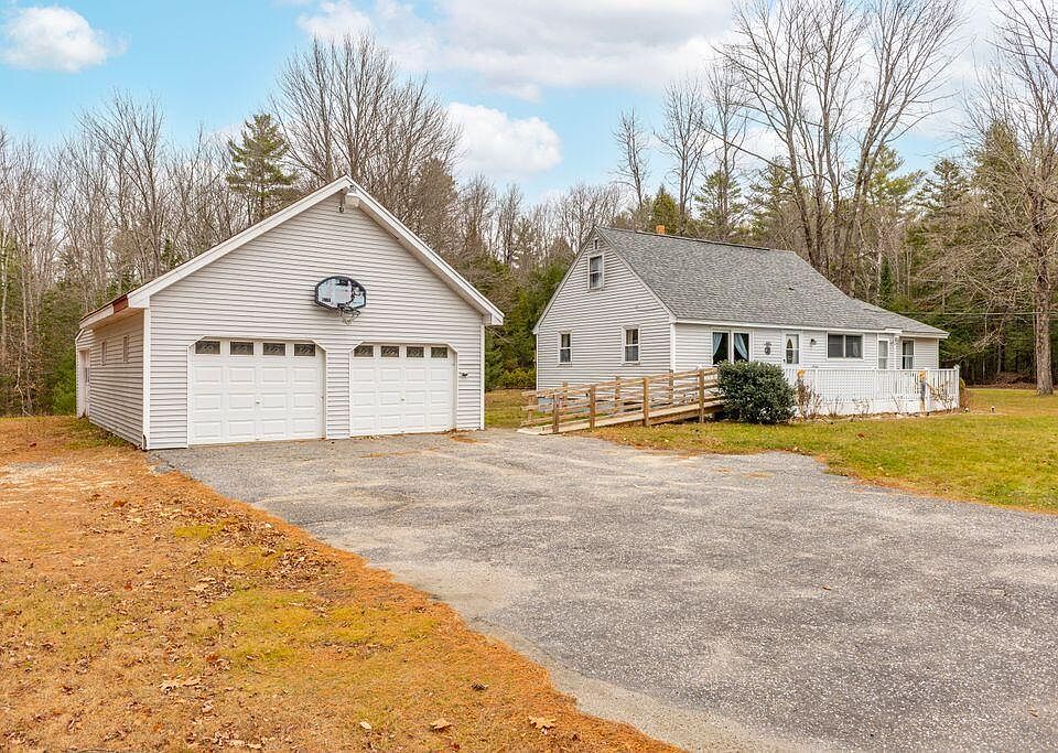 WOW! Single-family expanded Cape offers the rare advantage of a fully separate in-law apartment, perfect for multi-generational living or rental income. Set on 2 peaceful rural acres, the main home features 3 bedrooms and 2 bathrooms, including a first-floor primary suite, hardwood floors, a ramped entry, a large open kitchen with dining area, and two inviting living rooms, with two additional bedrooms upstairs. The property includes a detached two-car garage with an extra bay, plus a second completely separate building with its own driveway, its own two-car garage, and a private 1-bedroom, 1-bath in-law apartment with in-unit laundry and its own heating system. This is a rare blend of space, privacy, and flexibility in a quiet country setting.