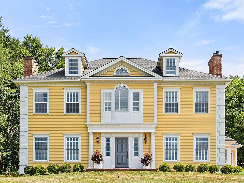 Roxbury dream home with forever views. Tucked away down a gracious drive off a bucolic town road this quintessential Georgian welcomes you home and envelopes you in calm and comfort. Arrival at the motor court provides the first glimpse of a western view that stretches from Roxbury as far as the eye can see, giving an immediate sense of place. The home, unabashedly radiant in its sunny yellow color, was purchased by the current owner in 2021 and underwent an exquisite glow-up by a noted local designer who transformed the residence into something formal, yet intimate; a place that feels so right with rooms that serve purpose. The masterfully appointed chef's kitchen will delight with abundant prep space, oversized range, and a refrigeration wall with dedicated cooling, freezer and wine storage. A sun-filled gathering space is adjacent as well as an informal dining area. A butler's pantry connects the kitchen and the formal dining room. The formal LR is across the foyer, a serene space with one of the home's 3 fireplaces. A den and a media lounge complete the main floor. Upstairs, the primary suite has been reimagined into a luxury space with dressing room and a spa bath. 2 guest BRs and a full bath complete this level. Above the 2 car garage is a guest apartment with living area/gym, BR and BA. Immaculate grounds with mature gardens and multiple outdoor dining spaces. Ready for new memories, this is a gem of a home within a dream of a town.