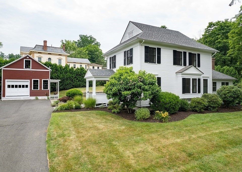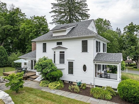 The Chapin-Ward house is a wonderful synthesis of graceful turn-of-the century architecture with all modern systems and amenities. The house was moved to the site in 2008 and rebuilt with a new foundation, all new electrical/heating/plumbing & insulation, creating a highly energy efficient home. An entrance hall opens into a paneled stair hall revealing elegant walnut and oak woodwork and stained glass windows.To the rear is a renovated kitchen with handsome cherry cabinets and black stone countertop, further back a cathedral-ceilinged living room with a fireplace has been added. Up front is a sun filled sitting room with an adjacent dining room and charming half bath. The 2nd floor has 3 well-lit bedrooms, including a primary en suite with full bath and walk-in closet. The finished 3rd floor with vaulted ceiling is ideal for a home office. A carriage house invites use as an office or studio. Adjacent to Amherst College, downtown & close to UMASS. Showings begin at open house Sat, 1-3