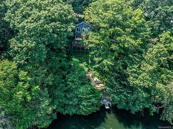 Vacation every day Over 2 acres of property & 400' of waterfront on beautiful Lake Zoar The house and property have been loved and cared for by the current owners for decades and their dedication to it shows. The house has a great layout with decks off the living room and lower family room overlooking the lake - a wonderful set up for entertaining both inside & out. Primary bedroom has built-in storage & pretty fireplace (functional condition unknown. The sunny kitchen has plenty of storage & a large adjoining area to accommodate both dining and office spaces. Cool, architecture details can be found throughout this home including vaulted ceiling with beams and exposed stone. There is a second fireplace in the living room & a woodstove in the lower family room that helps heat the entire house. The home's entrance is just a few short steps from the large parking area & detached, oversized 2-car garage w/separate area for a workshop. Pretty outdoor spaces include decking to the water & outdoor shower. The heavy lifting is done in the house - new oil tank and enclosure 2019, roof, plumbing and furnace are all 7 years old. Well tank and pump replaced 8 years ago and hot water heater is newer. The property has privacy and space but is in a wonderful neighborhood setting. A short walk takes you to Eichlers Cove Marina with beach and BBQ area. Hiking trails through Paugussett State Forest are at the end of Great Quarter Road. Make this your peaceful retreat