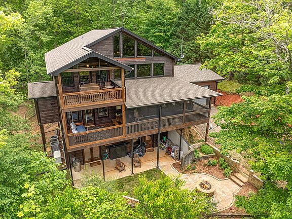Welcome to your dream escape in the coveted Aska Adventure Area—perfectly positioned near National Forest, Toccoa River, Lake Blue Ridge & miles of hiking & biking trails. This spacious 3 BR/3BA + Loft mountain home is thoughtfully designed with a Bed & Bath on each level, offering the ideal layout for full-time living, multi-generational use, or as a vacation rental. The open-concept main level welcomes you with a seamless flow from the dining area into a well-appointed kitchen featuring abundant cabinetry, an angled island & upgraded stainless steel appliances. Soaring ceilings, walls of windows & striking floor-to-ceiling stacked stone gas fireplace anchor the inviting great room that has French doors opening to an expansive screened porch with outstanding winter mountain views & just imagine the year round views with a bit of tree trimming! The main-level oversized master is a true retreat, complete w/porch access, dual vanities, jetted tub, walk-in tiled shower & a convenient laundry closet tucked inside the ensuite. Upstairs, a spacious loft overlooks a dramatic wall of windows w/awesome mountain scenery, making it the perfect space for an office or relaxation spot. A 2nd large master suite offers a full ensuite bath + private access to a covered porch w/breathtaking mountain views perfect to enjoy your morning drink. The terrace level is made for entertaining w/soaring ceilings, game room w/pool table & bar setup & walk-out access to a covered patio & custom firepit. A 3rd large bedroom, full bath & even more storage make this level ideal for guests or family. Set on a generous 1.77AC lot, the property also has a fenced yard & gated porches for your pets + an insulated, oversized 1-car garage w/mini-split perfect for a workshop or outdoor gear storage. Tons of recent updates including newer roof, AC units, tankless water heater & more. With a versatile layout, scenic setting & upscale rustic charm, this house is your ultimate mountain home, getaway, or STR.