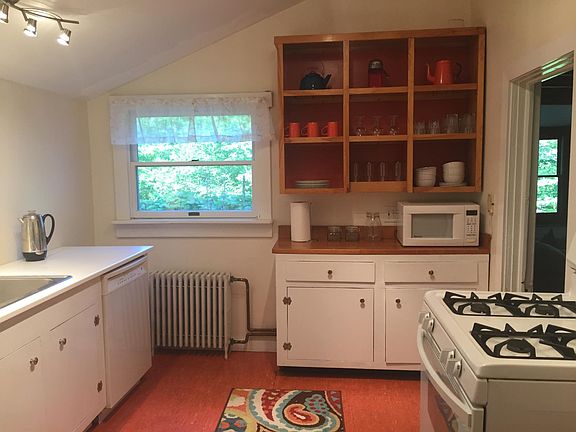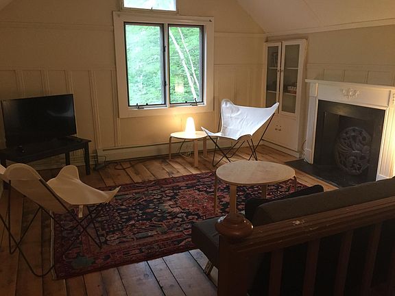 Peaceful, eclectic farmhouse filled with rustic Woodstock character and eclectic cabin charm. Fully furnished, the house offers three bedrooms (two with closets), a fully equipped kitchen, large living room with dining area, bathroom with clawfoot tub, and bonus game/smart TV room. This older home is nestled in the woods, uphill on a private road, yet convenient to the NYC bus route. It's a 10 minute drive to either Woodstock or Phoenicia village and 25-30 minutes to Belleayre and Hunter. Relax on the rocking chair porch to the sound of the rushing stream. Meditate in the secret garden. An AWD vehicle is strongly advised in winter. Disclosing that owner is a realtor, no fees to be charged or paid. In addition to 2-month summer rental, a longer lease would also be considered. Property is available for July and August at $4000/month including utilities/internet. $1000 security deposit required for summer rental. A one-year lease is available at $2900/month without utilities, with one month's security deposit. Note - the house is fully furnished and will not be emptied. Two parking spaces are included. No smokers. No pets preferred. There is a cottage on the property that is rented long-term.