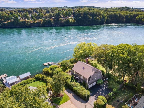 Live the waterfront lifestyle in South Eliot, where your private deep water dock awaits just steps from the front door and your boat will have you Portsmouth Harbor in under five minutes. Set along the Piscataqua River, this shingle-style gambrel home offers stunning water views from nearly every room and features a spacious patio ideal for watching passing boats, hosting summer parties, or soaking in the serenity. Inside, the open-concept main level boasts many architectural details: soaring ceilings, hardwood floors, crown molding, and an exposed brick wood-burning fireplace. The chef's kitchen features a butcher block island, granite countertops, high-end gas range, and abundant cabinetry. A flexible laundry room with built-in desk, tall wine fridge, and utility sink adds convenience, while the mudroom has an adorable powder room and connects to the two-car garage with full unfinished basement access. Upstairs, the expansive primary suite spans the width of the home, showcasing panoramic river views, dual walk-in closets, and a luxurious ensuite. Two guest suites offer private baths and generous closets. A third guest suite and a versatile loft, perfect for a home office or media room, complete the upper level, with access to a covered water-facing balcony. Other noteworthy features include central air, a whole house generator, home security system, partially fenced yard and exterior landscape lighting.
