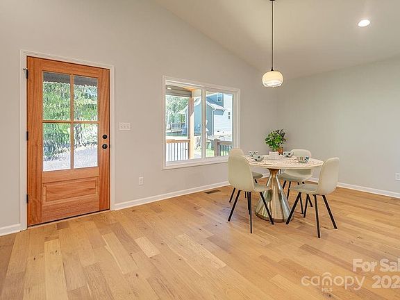 Welcome to this stunning single-level new construction home. The covered front porch and easy entry invites you right in. The vaulted ceilings, pre-finished white oak floors, large windows and open floorplan make the space so inviting, and perfect for entertaining. The kitchen features sleek granite countertops, a beautiful island, nice shaker style white cabinetry, and custom pendant lighting from local artisan, Kathryn Adams. The primary bedroom is a peaceful retreat with an en suite bath featuring double vanities, custom tile shower, and walk-in closet for ample storage. Sweet private covered side porch perfect for enjoying your morning coffee. This home has it all at a really palatable price. Intentionally thought out easy one level living. Comfortable, convenient, and cute! All of this within a 12 minute drive to downtown Asheville, and 8 minutes to the RAD and West Asheville. Grocery stores, the , and a park all just around the corner!