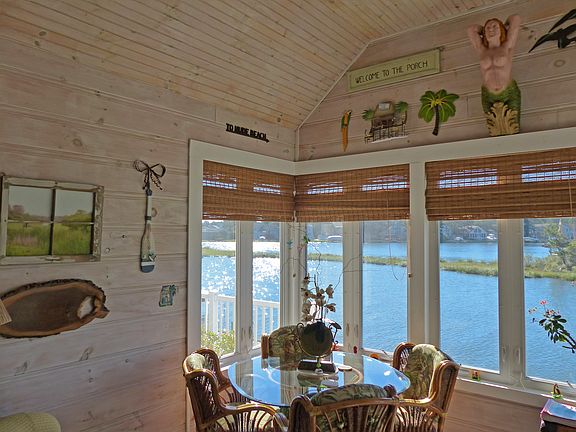 Coastal Elegance with open water views! Custom-designed by owner and built by T&G, this home has all the ''I wants'' and more. 3 Master bedrooms- 2 on 1st floor. 3 bedrooms have balconies. Quartz counter tops in spacious kitchen w/ Wine Cooler and custom cabinets. Living Room has gas fireplace. Jetted Ultra tub in master bath with heated floor. Bonus bedroom + storage rm. and finished with unique features like built-ins. Surround Sound. 4-season Sunroom has great views of Swim & Tennis Club, sandy beach and quick access to River. 2 car oversized garage. Power awnings over rear deck. Ground level rear decking to bulkhead. 4 pilings for mooring your boat. In-ground sprinkler system. A gracious 11x10 entry foyer with tile. Carefully landscaped for easy maintenance. Easy to show