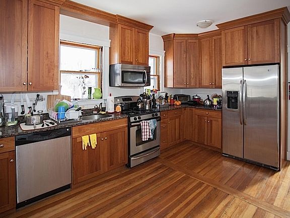 1st floor of a 2 fam. Located just 3 min walk to Davis and 8 min walk to Porter. 3BR/2BA. Good size bedrooms, renovated kitchen with DW and range hood as well as granite countertops. Hardwood floors throughout. Large windows and lots of natural light. Back yard w/ artificial grass for entertaining. Coin/card operated laundry in the basement. *Kitchen picture is of upstairs unit with very similar set up.