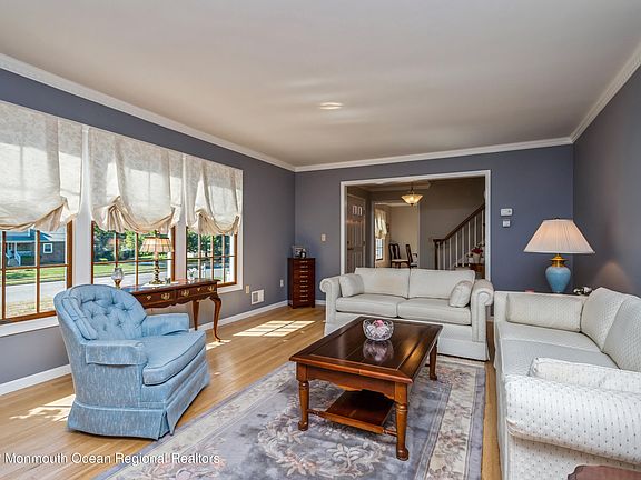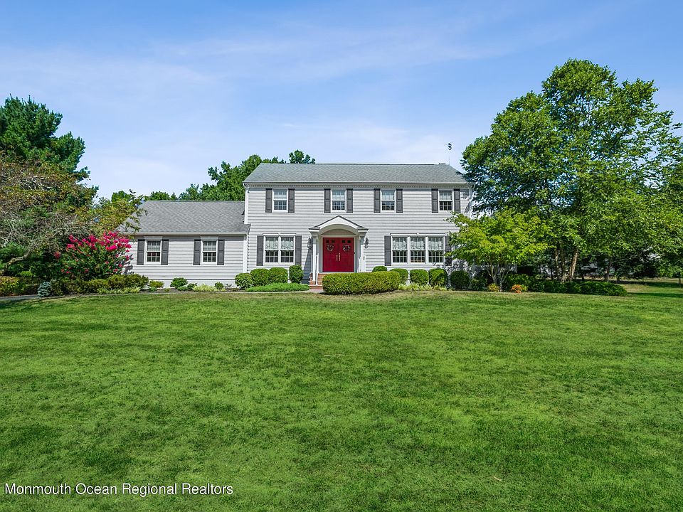 Meticulously maintained Colonial in one of Holmdel's prime locations, Heather Hill, w great curb appeal. Bright & Airy home boasts 5 BR's, 2.5 BA's, Anderson windows & full basement. Spacious sun filled Liv/Din rms w wood flrs. Family rm w brick FP next to office/5th BR w its own HVAC. Updated EIK w quartz ctrs, pendant lighting, soft close cabinets, new backsplash, SS appls, stove w dble oven pantry & wood flrs. EIK overlooking a private yard w large deck & half court basketball. Oversized Mud/Laundry room as you enter from the garage. The 2nd flr offers generously sized BRs, new main BA w quartz ctrs, Primary BR w new ensuite BA & WIC. All this & Nest security door bell/cameras & newer roof. Highly rated Holmdel Schools. Conveniently located near parks, close to Village Elementary School