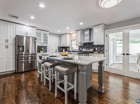 SPECTACULAR TOTALLY RENOVATED CENTER HALL COLONIAL ON 1.24 ACRE LOT IN HIGHLY DESIRABLE DONNY BROOK SECTION OF MONTVALE. LARGE OPEN FLOOR PLAN, FEATURES A MODERN KITCHEN WITH BEAUTIFUL ISLAND TABLE AND SS APPLIANCES, DINING ROOM, FAMILY ROOM WITH FIREPLACE,FORMAL LIVING ROOM AND A SPECTACULAR SUN ROOM THAT OVERLOOKS PRIVATE BACK YARD AND PATIO. ENTRY FOYER AND POWDER ROOM COMPLETE FIRST FLOOR. SECOND FLOOR FEATURES MASTER BEDROOM WITH MASTER BATHROOM, ADDITIONAL 3 LARGE BEDROOMS WITH A FULL BATH. HARDWOOD FLOORS THROUGHOUT. FULL FINISHED BASEMENT, MULTI ZONE HEATING, CENTRAL AIR, 2 CAR GARAGE, HARDI PLANK SIDING AND SPRINKLER SYSTEM. TOP RATED SCHOOLS. CLOSE TO EXPRESS BUS AND TRAIN TO N.Y.C.