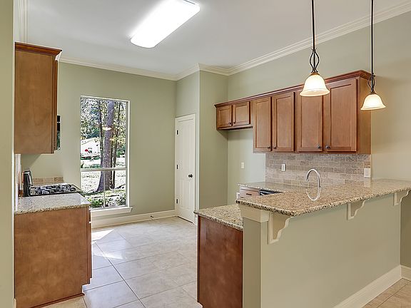 This new construction home was built by Jenkins Homes Inc., an outstanding builder for over 30 years in West St. Tammany Parish. This is a four bedroom, two bath home with a split floor plan and high ceilings. Solid granite and tile backsplash compliments 42-inch cabinets and a nice-sized pantry. Laminate wood in the living room, dining room and foyer. Master bedroom features a coffered ceiling. Large, spacious corner lot (155 x 173) about 0.6 acre. Heater, water heater, fireplace are natural gas. There is also a gas stop on the back patio just waiting for a bbq pit. Hookup for clothes dryer can accomodate either an electric or gas dryer. Preferred flood zone C which means your lender will not require you to carry flood insurance. Home just completed November 2014. All of this for a very reasonable price.