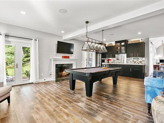 Modern & gut renovated, this spectacular home has it all. This transitional Georgian colonial has a traditional layout with a modern twist & an open floor plan. Entertain in the living room w/fireplace & wet bar or dine with friends & family in the formal dining room off the gourmet European kitchen. Lounge in the great room with 2-story stone fireplace or spread out onto the terrace or the expansive deck that lead to the fabulous back yard or cool off in the pool w/waterfall set in the natural stone. The Master bedroom has huge walk-in closets & a stunning master bath. 2 additional bedrooms & baths round off the second floor. There is a guest bedroom & bath with an office/family room on the third floor & more office space and a game room or gym w/full bath on the finished lower level.