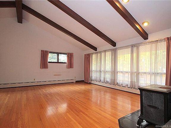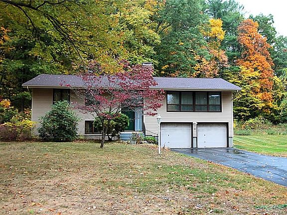 Looking for a peaceful and tranquil location-this is it! This raised ranch set on 2.25 acres is located on a quiet street , but close to all the town amenities and easy access to highways and shopping. The main level is spacious and offers an open floor plan. Large living room offers a large fireplace area with a wood stove, hardwood floors, vaulted ceiling and leads to cozy dining room with slider to a deck. The eat in kitchen is fully applianced with an eating area, and also leads out to the deck area which overlooks the private backyard setting. Master bedroom with double closet and master bath , two additional bedrooms and a family bath complete the first floor. The lower level is partially finished featuring a large family room, additional 4th bedroom or office space, full bath with a stall shower and a laundry room. Two car garage and central air. Pull down attic for additional storage. Property being sold in AS IS condition. Easy to show. Highest and Best offer due by October 21 at 300 pm