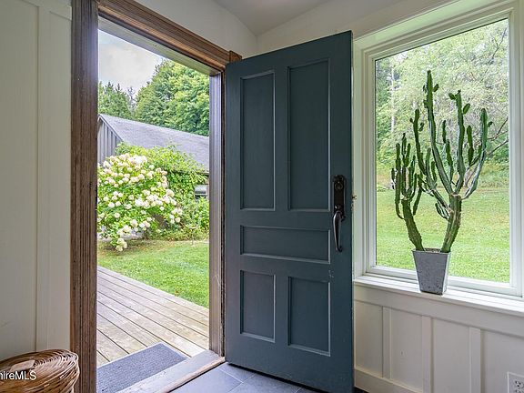 Stylishly renovated three bedroom, two full bath home on a double parcel with a two-car garage, mature peach and pear trees and a meadow. Originally built as one of the mill manager's houses, it's located nearby the village of Housatonic yet over the boarder into West Stockbridge, where property taxes are far less. The large eat-in kitchen has custom cabinetry stainless appliances and marble counters. The family room has triple exposure and a wood stove. The living room has glass doors to the front glassed porch. A full bath is off the mud room and the three bedrooms on the second floor share a bath, which is also ensuite to the primary bedroom. Laundry is on the second floor, as is a stairway to a large attic. A full basement underneath with a 2013 boiler and on-demand water heater.