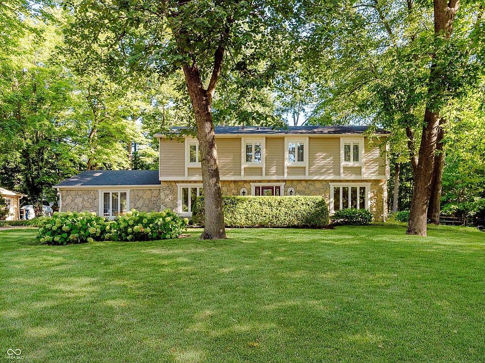 Beautiful rock-solid 4BR home in desirable Woodland Springs! Amazing lot and the perfect Carmel location - Main level is open and bright with gleaming hardwoods - Spacious living room adjoins perfectly with kitchen and dining areas - Kitchen features granite counters, farmhouse sink, walk-in pantry, and high-end SS appliances - Upper level features primary suite with brand new bathroom and dual closets - 3 secondary BR's are generous in size with custom closets - Updated hallway full bath - FINISHED BASEMENT with bonus room and storage offers options galore - Cozy wood burning stove provides additional ample heat in the winter - Convenient sliding glass doors walk out to large concrete patio and serene back yard oasis - Wonderful oversized lot has lush landscaping, fully fenced back yard, large parking pad, and custom storage barn - KNOCK OUT LOCATION and neighborhood offers pool, lake, and clubhouse access and is minutes to all things Carmel and North Side Indy!