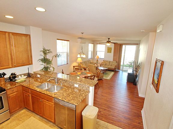 This beautiful and spacious, mostly furnished, ground level unit has 2 bedrooms 2 bathrooms and a large 116 sf lanai that can be accessed from the living room slider or from the master bedroom. Newer luxury vinyl plank flooring and tile throughout. This unit comes with a private single car garage and a second assigned parking space. The kitchen features granite counters, stainless steel appliances, nice cabinets, microwave, dishwasher. There is a washer & dryer with a laundry room and sink. 10 foot ceilings for a bigger feel. Three Split-system air conditioners for your comfort located in each bedroom and the living room along with lighted ceiling fans, security screen door on the front door, and window coverings on all windows. This complex has a resident and guest only pool, hot tub, BBQ area with ample seating/tables & pool side cabanas. Car wash area located on the property. Quarterly outside pest spraying is provided by the HOA in the owner's duesif interior spraying is wanted, see Manager you need to arrange 2 days in advance and pay Mid-Pacific Pest Control for separately. Water, sewer, and standard trash removal as provided by the HOA included in the rent. Tenants responsible for all other utilities, including obtaining and maintaining renter's insurance.