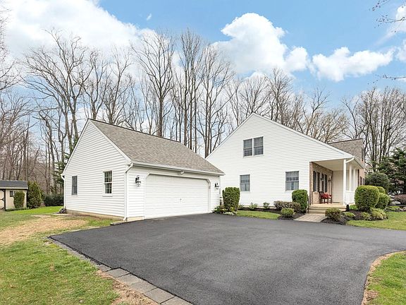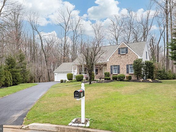 Charm meets stylish design: welcome home to 32 Hunter Drive, where classic comfort and refined craftsmanship harmonize with a park-like setting of flat, grassy yards backing to trees & open space! Your new home is on a premier cul-de-sac lot in the bucolic Hunters Glen, a street of only 15 houses nestled in a location convenient to major travel routes, trains, shopping, parks & fun --- PLUS NO HOA and public water/sewer! BONUS---includes an AHS ShieldComplete Home Warranty, which is the highest level of coverage & peace-of-mind for you! Up the hardscaped paver walkway, over the inviting front country Porch & brick facade, and into a first floor showcasing an open lay-out replete with sun-filled windows! The Living Room features a custom built-in shelving/media center, and opens into the Eat-In Kitchen and Dining area, both replete with gleaming hardwood floors. This Kitchen is truly the heart of the home: sit-up center island with built in cabinets; flat-top range; wall oven; microwave; dishwasher; french door fridge with bottom freezer drawer (included!) and raised-panel cabinetry including under-cabinet lighting & a built-in pantry. And the adjoining Dining area boasts a huge picture window awash in sunlight & overlooking the yards! Two adjacent Bedrooms on this first floor, enabling you to have 2 separate bedrooms OR one huge suite OR use one as an Office! One has ample closet space with windows looking out over the landscaped yards, and the other has an oversized walk-in closet & additional closet. Also on this floor: updated Full Bath with tub/shower combo; coat closet; Powder Room; and door out to the paver Patio & yards. Upstairs is the third Bedroom; Full Bath with tub/shower combo; and spacious fourth Bedroom with a wall of closets, built-in bookcase, and study/gaming/crafting alcove. Both Bedrooms have ceiling fans and there is a mini-split for A/C. Do not miss the capacious 30x26 Game/Media Room in the Finished Basement, plus the extra work & storage area and Laundry (washer & dryer included!). The expansive 2-Car Garage with windows provides you with extra storage & work space, and has a separate exterior door out to the yards plus paver walkway to the Patio! And what an outdoor oasis it is! Half-acre of expert landscaping, mature trees, vistas of the open space, and the cul-de-sac setting --- so ideal for every day enjoyment PLUS entertaining! So much more: brand NEW asphalt driveway (March 2024) with parking for 6+ cars or trucks or RVs, etc.; NEW roof (May 2023); serviced HVAC systems; and newly power-washed exterior & mulched gardens --- all waiting for you! Schedule your showing TODAY! Some photos virtually staged. Verification (including sq ft/size/lay-out/more) lies with the consumer.