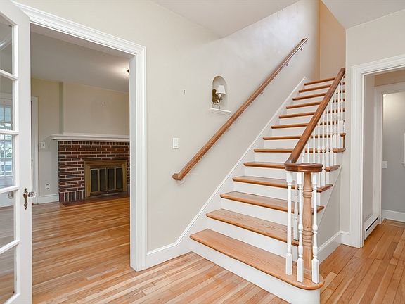 Welcome to 32 Hunting Street, a charming Colonial offering timeless appeal and modern comfort. This home showcases a perfect blend of classic architectural details and contemporary upgrades. Step inside to discover a beautiful wood-burning fireplace in the living room and an elegant dining room complete with a charming corner built-in. Hardwood flooring throughout adds warmth and character. The incredible screened-in sunroom offers an idyllic spot to enjoy your morning coffee or unwind with a book. Three spacious bedrooms and a primary bed feature generous closets and access to an incredible rooftop balcony. The private fenced yard has an incredible patio that’s perfectly positioned under a shade sail and provides a tranquil oasis for everyday enjoyment. A one-car garage with power and a new door offers convenient storage space for vehicles and outdoor gear. Highly efficient heat pumps and new central air in 2021 ensures energy savings and year-round comfort. Showings begin