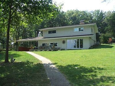 94 feet of FLAT LAKEFRONT and stunning LAKEVIEWS from this comfortable family home on a double lot. Perfect for building an additional home or expanding on this one. Open floor plan with plenty of room for dining and entertaining. Beautiful brick wood burning fireplace makes the main living area very cozy and a wall of windows faces the lake to the East/Northeast to view the spectacular sunrise. Upstairs there are three spacious bedrooms two with lakeviews and a large bathroom with handsome tiles and an oversized deep step in tub. Enjoy walking out your door and having NO STEPS TO THE DOCK. One car detached garage and 2 stall carport on top of tons of room to park.