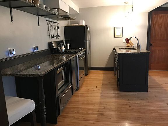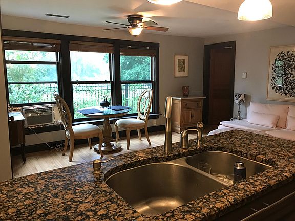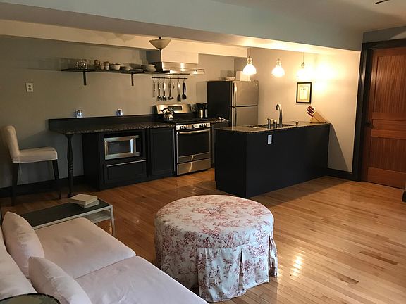 Enjoy the water view year round from the expansive living room and bedroom windows, from the kitchen or the front porch swing. The kitchen features granite counters, high end cabinets, a new gas range, and dishwasher. This two bedroom apartment has a private yard with waterfront on one side and in the backyard has a view of trees and the Union College boat house. Public tennis courts, the community pool and the Mohawk bike path are just outside the door. This home won a preservation award and has amazing detail. On site parking is included, and there is a washer/dryer hookup (and currently a w/d) This is a very special riverfront rental, a two block walk from the heart of downtown and the Amtrak station, and is situated within the Stockade Historic District. Please write an email to request a showing and complete the Zillow rental application. Utilities and internet are not included. No smoking property.