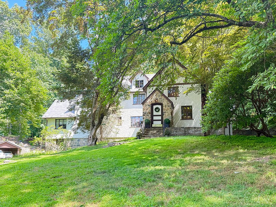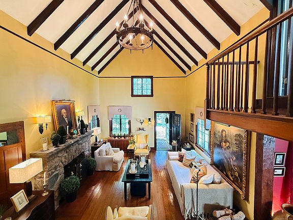 Stunning historic English Countryside house built by Henri Bendel of New York as his summer retreat. This unique 4/5 bedroom, 3.5 bath, stucco and slate roof home is situated among parkland trees and an expansive lawn on a 1.1 acre lot. The gourmet kitchen has beautiful custom cabinets, granite countertops and premium appliances including a Viking Professional stove. Bathrooms are all updated and oak hardwood floors flow throughout the house. The large living area has tall walls and a vaulted ceiling with an impressive stone fireplace. Off the living area is a cozy reading/piano room for relaxing. The large master bedroom has an attached reading/exercise room. Throughout, you will find many original sconces and light fixtures chosen by Henri Bendel. Outside there are individual porches on all four sides, a fenced back lawn, and sprinkler system to keep everything looking nice in summer. You will not see another house with the history and unique features embodied in this home.